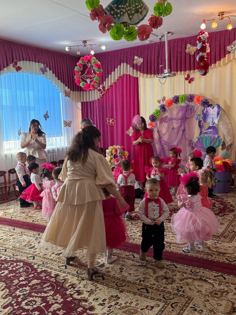 Мақсаты: шаттық атмосферасын құру, балалардың анасына, әжесіне, қыздарына деген сүйіспеншілік, алғыс, құрмет сезімін дамыту.